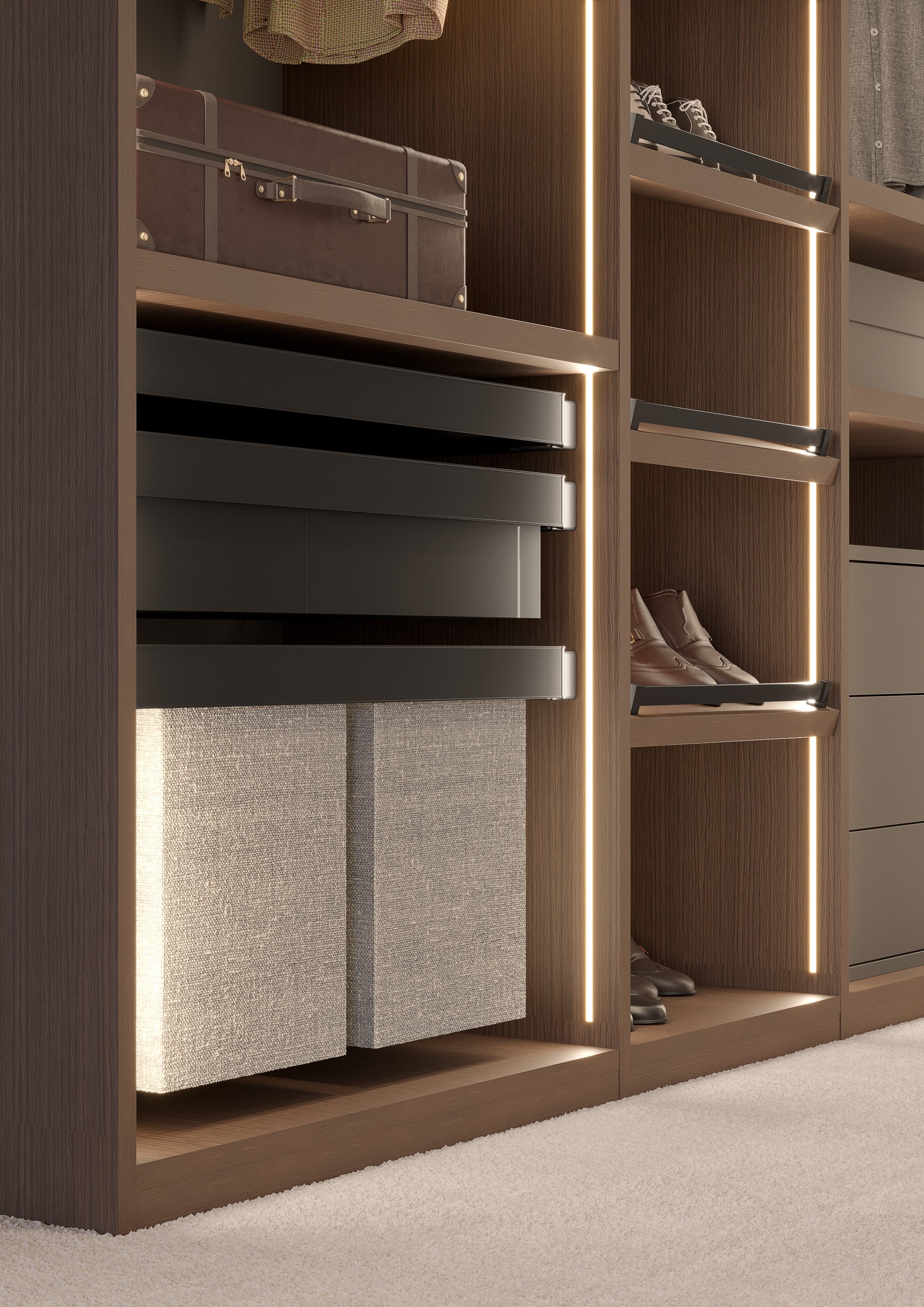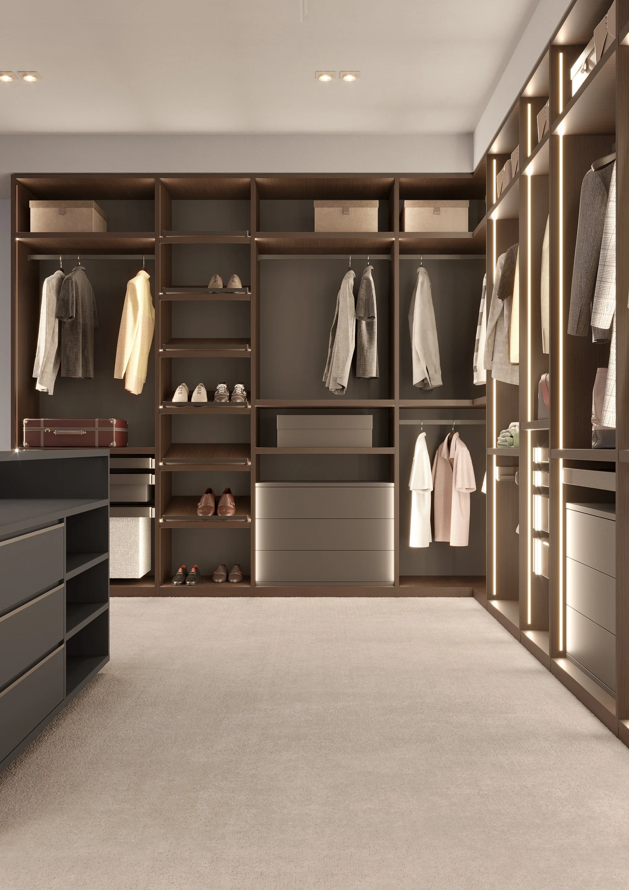 Nexus is the ideal choice for those seeking an exclusive, functional, and highly customizable walk-in closet.